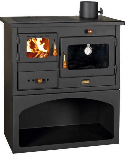 Sparhelt, új formatervezéssel kompakt méretű sütővel. Nagymamáink régi konyhai hangulatát idézi, modernebb kialakítással rendelkező, sütő, főző tűzhely, boltíves fatárolóval.