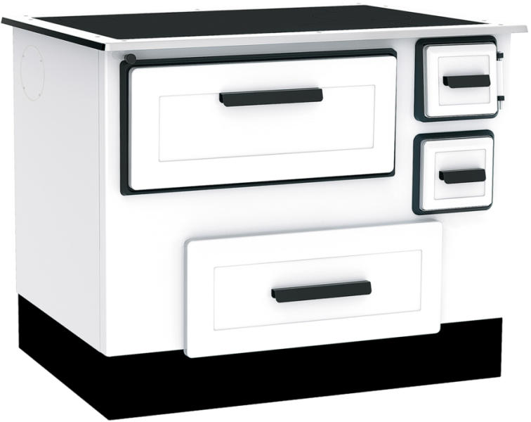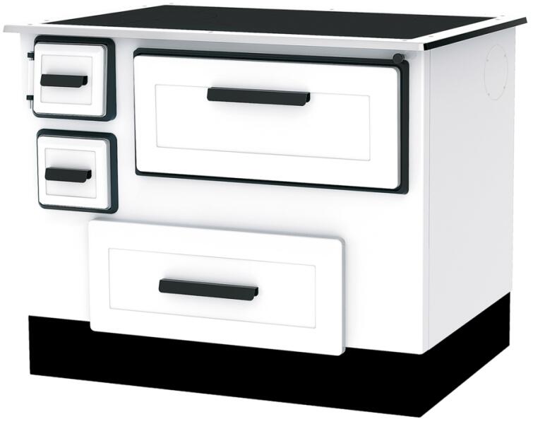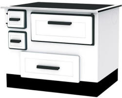 Klasszikus formájú zománcozott fűtő és sütő-főző készülék. Eredeti forma, kiváló teljesítmény. A füstcső kivezetést illetően jobbos és balos kivitel létezik, ezért rendelésnél kérjük jelezze, hogy melyik típusra lenne szüksége. Sütő méretek: 195 x 550 x 540 mm.